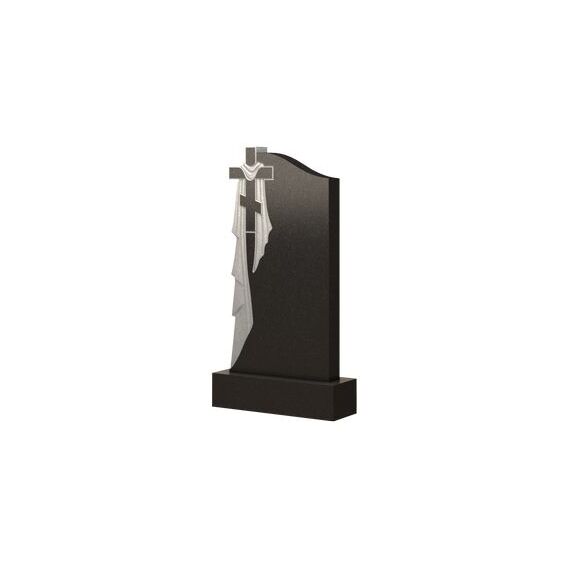 Памятник относится к разряду фигурных моделей. Его верхний левый угол украшен силуэтом православного креста, на котором до самого основания спускается драпированная ткань белого цвета. Верхушка надгробия выполнена в виде волнообразной черты, тем самым придавая конструкции изящность и эстетичность. Такой простой, но в то же время уникальный надгробный памятник поможет не только указать на вероисповедание покойного, но и отобразить в себе его лучшие черты характера, а также показать, насколько этот человек был уважаем, любим и дорог для родных, близких и всех окружающих его людей.