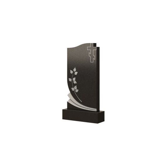 Данная модель относится к группе фигурных памятников. Необыкновенный внешний вид ей придают элементы декора, которые вырезаны на стеле. Ее основание украшено рельефными вставками белого цвета. Они гармонично контрастируют с основным цветом изделия и делает его более красивым и грациозным. Верхний правый угол венчает силуэт распятия, который указывает на вероисповедание покойного. Кроме того, в качестве оформления памятника служит гравировка ветви березы, символизируя чистоту души усопшего, его мягкосердечие, невинность, добродушие и другие лучшие черты характера.