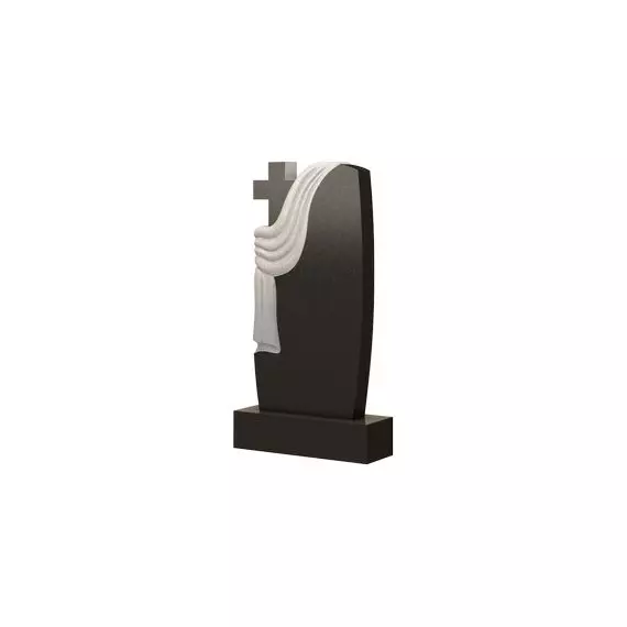 В этом памятнике сочетаются самые лучшие черты, которые превращают изделие в единый ритуальный ансамбль, притягивающий к себе внимание. Верхушку надгробия венчает образ креста. Его обвивает белая ткань, придающая всей конструкции легкость, изящество и элегантность. Таким образом, надгробный памятник представленной модели идеально впишется в любой стиль оформления места захоронения и станет великолепным акцентом, который будет венчать могилу вашего любимого человека, а также рассказывать о всех скорбных чувствах, испытываемых родными и близкими людьми.