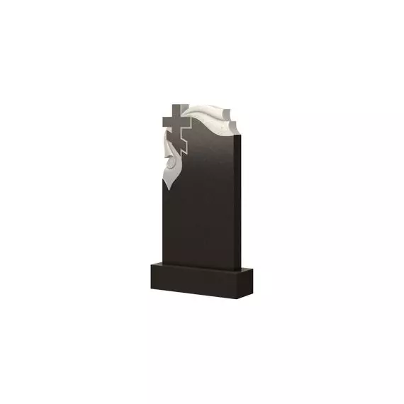 Модель, представленная на этой странице, является разновидностью памятников с крестом и плащаницей. Сама стела имеет фигурную форму со скошенными верхними углами. В одном из них расположен шестиконечный крест, от которого по граням расходится ткань, получившая название плащаница. Такое сочетание украшает памятник, делает его более художественным, красивым. Это не только декор, но и соблюдение христианских догматов, помогающее подчеркнуть принадлежность умершего к этому вероисповеданию. И форма надгробия, и его оформление подчеркнут самые светлые чувства родственников по отношению к покойному человеку.