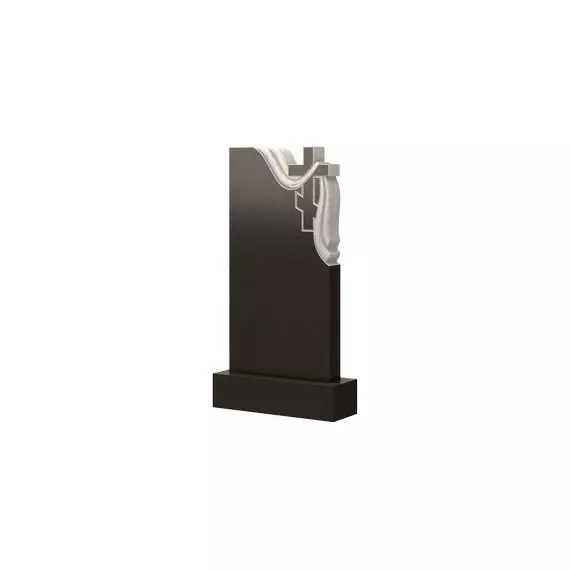 Незамысловатая и строгая модель памятника прямоугольной формы, имеющая декоративное рельефное оформление в правом верхнем углу. Красивый православный крест прорезанный в стеле, задрапирован струящимися складками плащаницы, которая плавными волнами мягко обрамляет вершину и правую боковую грань надгробия. Левая сторона выполнена четкими прямыми линиями, которые задают общий тон мемориальному изделию, придавая ему сдержанность и лаконичность. Модель такой формы достойно оформит место захоронения покинувшего это мир близкого и любимого человека, сохранив добрую память о нем.