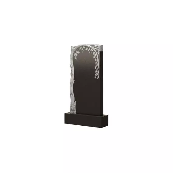 Модель памятника характерной прямоугольной формы, представленная и четкими прямыми линиями, и острыми неровными отрезками, составляющими общий контур мемориального изделия. Большую часть стелы по боковым граням обрамляет контрастная корка. На лицевой стороне памятника ее практически не видно, поскольку она прикрыта резным барельефом стройной молоденькой березки, изящно и элегантно обнимающей каменную плиту. Гибкие плакучие ветви дерева плавно свисают, словно поникнув в безмолвной печали. Такая эмоциональная выразительность надгробной модели поможет наиболее полно раскрыть всю глубину чувств родных к почившему дорогому человеку.
