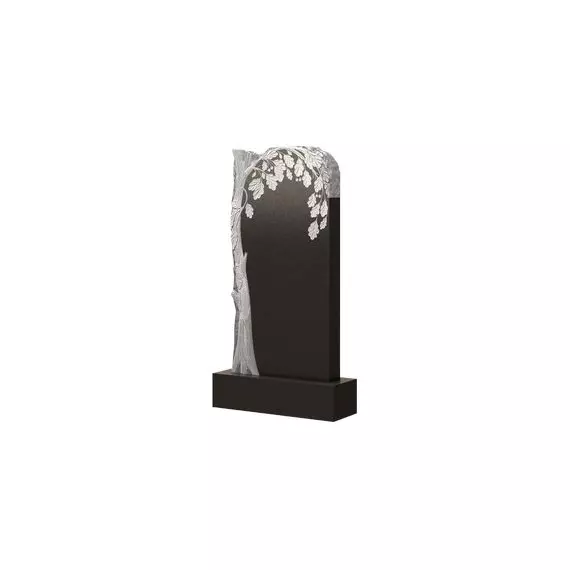 Модель памятника прямоугольной формы с резным рельефным изображением могучего дуба по левому краю стелы. Рисунок дерева наполнен смысловой нагрузкой, которая отражает силу, мужественность и стойкость. Памятник с таким оформлением наиболее полно раскроет особенности личности усопшего, отразив такие черты характера как стойкость, выдержка, упорство и выносливость. Установленное на месте захоронения, надгробие придаст могиле солидный и красиво оформленный внешний вид, а также достойно подчеркнет образ любимого и родного почившего близкого человека.