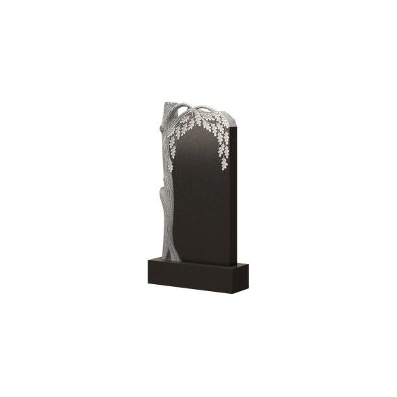 Изображение памятника на этой странице сразу обращает на себя внимание искусностью исполнения. В качестве оформления используется изображение дерева, каждая деталь которого аккуратно и с максимальной четкостью прорезана. Ветви дуба выходят за стелу, изгибаются и листочками спадают на лицевую сторону надгробия. Оформление весьма гармонично сочетается с простой формой стелы и коркой, расположенной на самой верхушке надгробия. Все в совокупности делает изделие колоссальным произведением мемориального искусства, способным увековечить память об умершем, а также украсить место покоя.