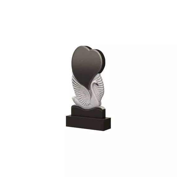 Представленную модель по праву можно назвать шедевром мемориального искусства. Две художественные фигуры — сердце в крыльях лебедя — переплетены в этом трогательном изделии. Сердце поможет подчеркнуть любовь к усопшему человеку, которая не кончается даже после смерти. Лебедь символизирует чистоту души, а в некоторых случаях помогает отобразить доброту умершего при жизни. Нижняя часть памятника имеет волнообразную форму — создается ощущение, что лебедь как бы плывет, унося душу в новый, загробный мир, в спокойствие и умиротворение.