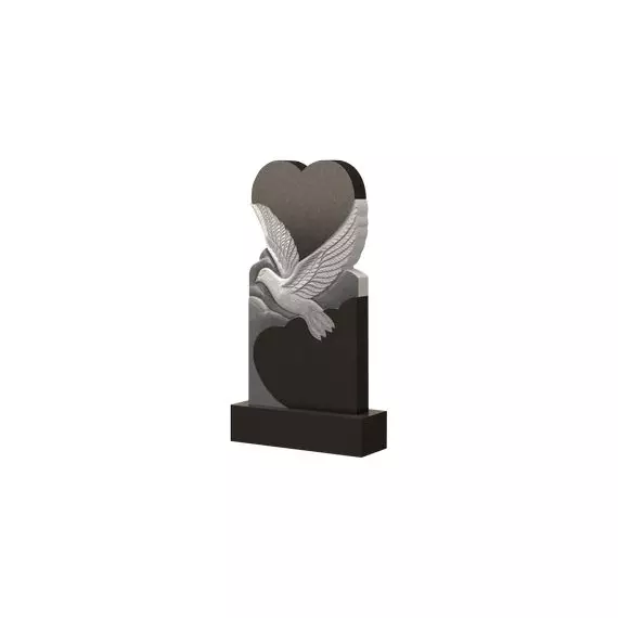 Это надгробие по праву можно назвать шедевром, так как здесь несколько художественных элементов, которые гармонично сочетаются друг с другом, пронизывая мемориальное изделие особенной чувствительностью. Верхушка памятника — это сердце, традиционный символ любви и привязанности. Оно плавно переходит в следующий элемент — голубя, символизирующего мирный полет души. Нижняя часть дополнена округлыми деталями, которые своими очертаниями напоминает облака, что в лишний раз подчеркнет свободу умершего от трудностей земной жизни. Красота изделия позволит использовать его не только для сохранения памяти, но и для украшения захоронение, а именно станет центральным элементом оформления могилы.