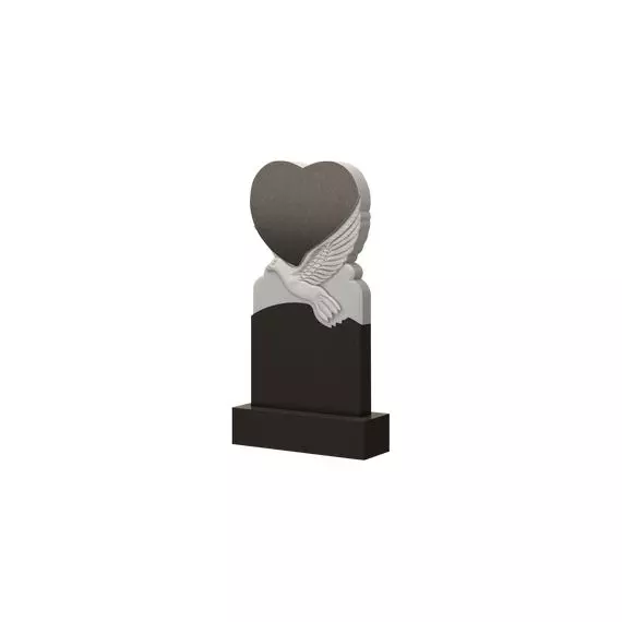 Эта модель отличается своими высокими показателями эстетической красоты, а также художественностью. Каждая деталь словно пропитана утонченностью. Нижняя часть памятника плавно перетекает в небольшой округлый элемент, который можно сравнить с облаками в небе. Здесь расположился голубь — по изображению его крыльев становится понятно, что он находится в движении точно также, как и душа умершего. Венчает надгробие самый известный символ любви — сердце. Все в совокупности гармонично сочетается, поэтому такой памятник, как шедевр мемориального искусства, поможет не только обозначить могилу, но и красиво её украсит.