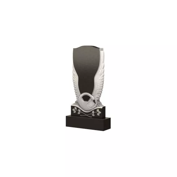 Представленная здесь модель отличается высокими художественными показателями, особой утонченностью, которую добавляет образ лебедя с расправленными крыльями. Они как бы обнимают стелу, подчеркивая границы мемориального изделия. Лебедь символизирует вечную любвь и верность; он также обозначает возрождение души умершего от земной жизни в жизнь вечную, свободную от тягот и невзгод. Изогнутая линия нижней части надгробия ассоциируется с волной. Здесь в качестве украшения используются вырезанные в камне две перекрещенные веточки дерева. Все надгробие пропитано нежностью, благодарностью, любовью, которые испытывают родные люди к умершему.