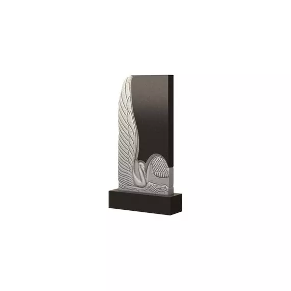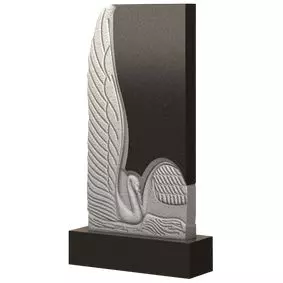 Модель памятника классической прямоугольной формы, украшенная красивым резным барельефом птицы. Изящный белый лебедь плавно плывет по морским волнам. Взмахнув своими широкими могучими крыльями, он печально склонил голову над водой. Изображение нежной и грациозной птицы передает всему мемориальному изделию особую выразительность и эмоциональную насыщенность. Сама стела является отражением искренних и теплых чувств, которые испытывают родные и близкие к ушедшему в мир иной дорогому человеку. Такое чувственное надгробие станет достойным венцом любого места захоронения.