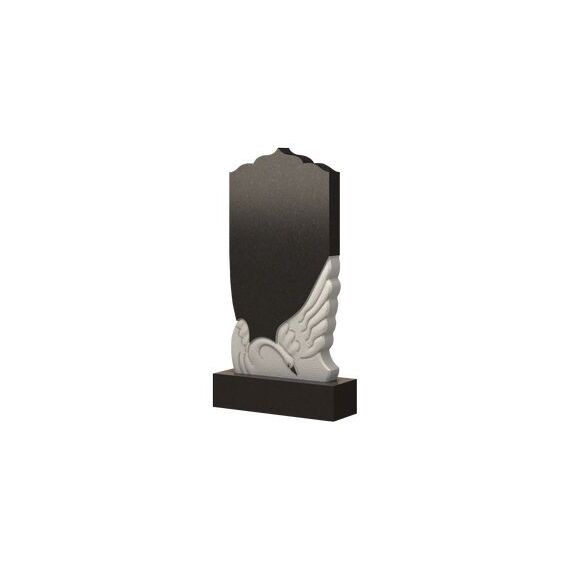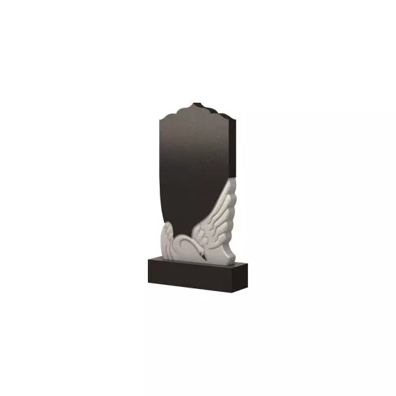 Красиво и интересно исполненная форма памятника. Нижняя часть стелы представлена резным барельефом изящной и грациозной птицы. Изображение белого лебедя наделяет надгробие некой легкостью и невесомостью, придавая ему аристократическую изысканность. Верхняя часть памятника выполнена в контрастном черном цвете и представлена гармоничным слиянием ровных и волнистых линий. На самой макушке плиты можно рассмотреть силуэт небольшого купола храма, красиво венчающего всю композицию памятника. С помощью такого надгробия можно наиболее полно выразить все самые добрые и светлые чувства к усопшему, а также запечатлеть в памяти милые сердцу черты.