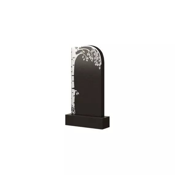 Интересное воплощение природных очертаний и символики отражено в представленной модели. Классический прямоугольник здесь словно обрамлен нежным, но в тоже время устойчивым стволом березки, которая, раскинув свои ветви, обрамляет основную часть, создавая контраст не только с идеально ровной правой стороной, но и с цветом основной плиты, где будут располагаться личные данные. Идеальное сочетание классического стиля ритуального искусства с природными очертаниями дерева, вырезанного в виде барельефа, будет играть своими контрастами, делая изделие выразительным и заметно выделяющимся среди себе подобных.