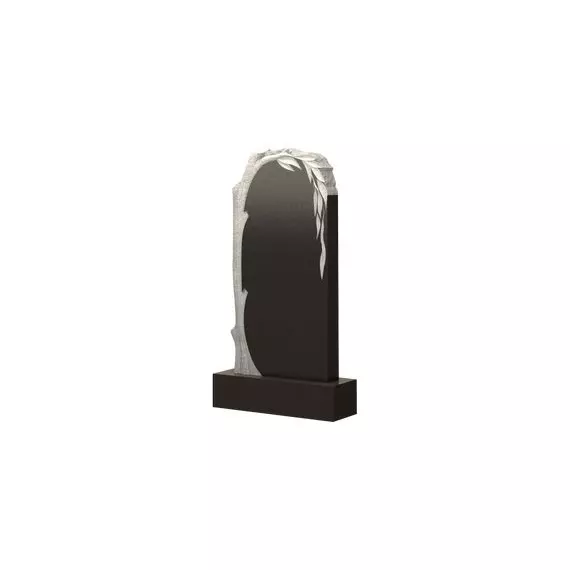 Горечь потери, светлую грусть, плачь отображает склоненное дерево на этой модели памятника. Здесь мы можем увидеть игру контрастов: на черном надгробии отчетливо проступает изображение дерева, тем самым придавая изделию большую чувственность и эстетическую красоту. Верхняя грань осталась необработанной — такой элемент в ритуальном искусстве носит название корка. Она добавляет изделию монументальность, так как подчеркивает мощь и долговечность каменного изваяния. Сочетание эстетики, величия и практичности делают этот памятник по своему особенным, выделяют его из модельного ряда мемориальных изделий.