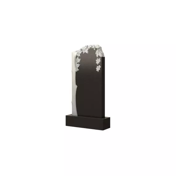 Представленная модель несколько отличается от памятников с изображениями деревьев. В ритуальном искусстве наиболее часто встречаются надгробия с березой, ивой, липой, здесь же мы видим клен. Выбор дерева здесь не случаен: по мимо внешней красоты, клен моет нести в себе особое значение, некий символизм. Наиболее часто встречается значение начала, что хорошо вписывается в мемориальную тематику. Многие люди верят, что смерть — это начало новой жизни. Стоит отметить, что кленовые листочки очень красивы и соответственно они добавляют привлекательность всему изделию. А использование необработанного края — корки — сверху, придает надгробию некоторую особенность.