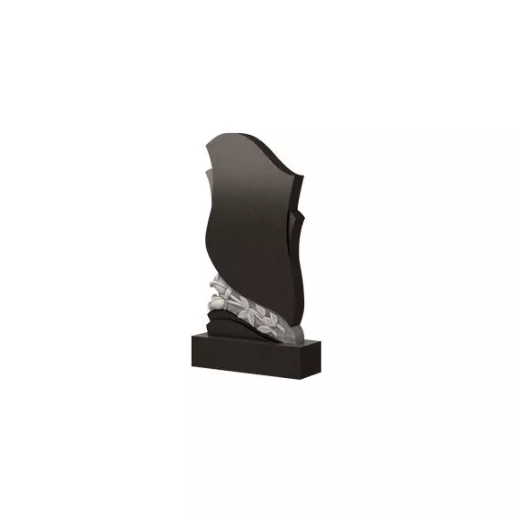 Эта модель памятника относится к категории фигурных, причем уже сразу можно обратить внимание на сложность исполнения. Надгробие разделено на две части вставкой в виде необработанной части камня, на поверхности которой вырезаны две изящные розы. Они имеют довольно крупные размеры, а их бутоны выступают за поверхность изделия. Интересное решение было принято художником относительно верхней части — своими очертаниями стела напоминает цветок, а нижняя изображает цветоложе. Такая тематика добавляет трогательность надгробию, помогает высказать любовь к умершему.