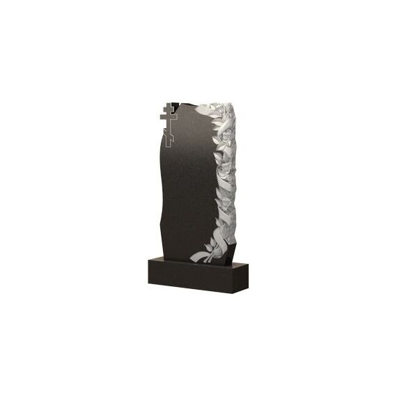 Надгробный памятник данной модели представляет из себя одно из лучших воплощений ритуального искусства. Особое внимание к себе привлекает правая сторона. Она оформлена резными розами, которые переплетены между собой траурной лентой. Верхний левый угол венчает образ традиционного восьмиконечного православного креста. Таким образом, надгробие поможет отобразить вероисповедание покойного, подчеркнуть все его лучшие черты характера и выразить горестные чувства, испытываемые родными и близкими людьми, в связи с утратой дорогого и горячо любимого человека.