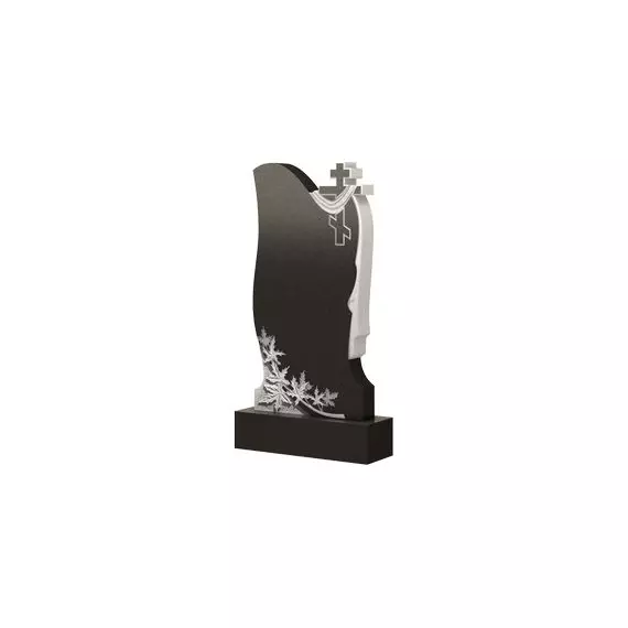 Представленная модель надгробного памятника оформлена изящными резными элементами. В верхней части – это православный восьмиконечный крест с плащаницей, указывающий на вероисповедание покойного. У основания стелы – ветвь с кленовыми листьями, которая придает всей конструкции нотку великолепия и живописности. Установив такое надгробие на могилу вашего любимого человека, вы сможете рассказать о достойно пройденном жизненном пути, а также на долгие годы сохранить в памяти милые сердцу черты и отобразить самые искренние эмоции, испытываемую по отношению к смерти.