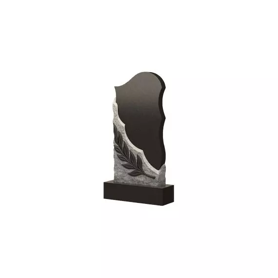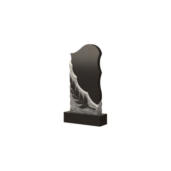 Фигурный надгробный памятник, у которого контрастирует нижняя и верхняя часть станет превосходным вариантом, чтобы обозначить захоронение любимого и дорогого сердцу человека. Основание стелы выполнено в белом цвете и имеет шероховатую поверхность, где изображен образ лавровой ветви. В древнегреческой культуре лавр символизировал славу, победу и мир. Таким образом, установив надгробие данной модели вы сможете подчеркнуть не только мужественность, смелость и сильные черты характера, которыми обладал покойный при жизни, но и рассказать о всех его заслугах и достижениях.
