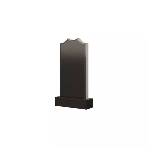 Форму данного памятника образует стандартный прямоугольник, претерпевший некоторую трансформацию в своей конструкции, а именно на его вершине. Она выполнена в виде волнистых полукруглых дуг, соединенными между собой остро торчащими уголками. Вся конструкция мемориального изделия целостна и гармонично сложена. Каждая линия плавно переходит в другую, прорисовывая строгий и незамысловатый силуэт сооружения. Памятник такой формы позволит максимально сакцентировать внимание на личности почившего, полно и всесторонне раскрыв особенности его характера.