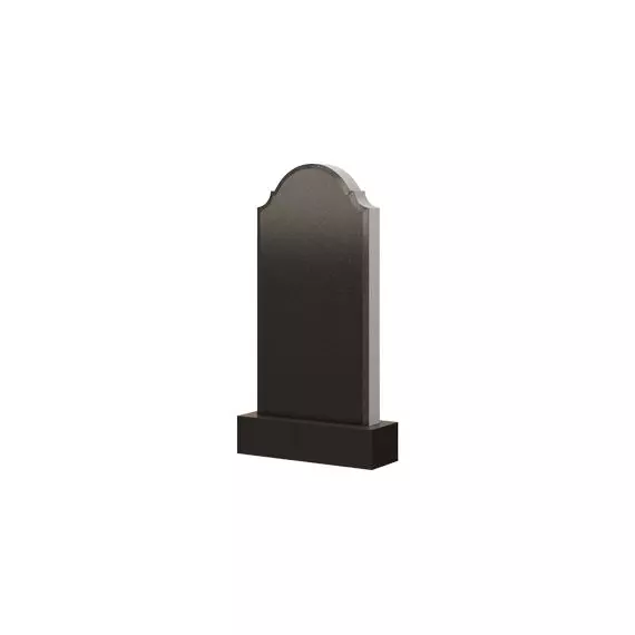 Представленная модель памятника имеет классический лаконичный силуэт, в основе формы которого лежит прямоугольник – четкие и ровные боковые грани являются тому подтверждением. Верхушка плиты представлена интересными очертаниями – изящная дуга прорисовывает полусферу, украшенную парой небольших остроконечных уголков. Благодаря надгробию такой формы можно полно и всесторонне отразить образ почившего любимого человека – особенности его характера, род деятельности, увлечения и другие важные моменты из жизни. Кроме того, мемориальное изделие такой формы достойно и красиво оформит могильный участок, подчеркнув особое уважение и почтение к усопшему родственнику.