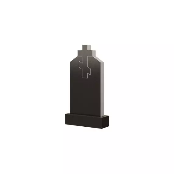 Простая и в то же время красивая модель памятника, которая станет прекрасным оформлением любого могильного участка. С одной стороны, форма надгробия имеет очертания классического прямоугольника, а с другой – треугольную верхушку в виде крыши, увенчанную крупным крестом. Четкие ровные линии гармонично переходят из одной в другую, создавая на стыках остроконечные уголки. Такой строгий и сдержанный силуэт наделяет мемориальное сооружение особой величественностью и основательностью, подчеркивая его религиозный характер. Данная модель как нельзя лучше отразит приверженность почившего к христианской вере.
