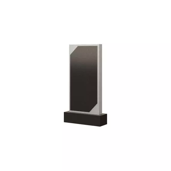 Строгость и солидность воплощены в представленной модели памятника. Четкие прямые линии силуэта надгробия и полированной черной вставки наделяют ее особой грандиозностью и всеобъемлемостью, создавая целостную и гармонично сложенную конструкцию мемориального изделия. В каждой его грани просматривается почтение и уважение к почившему. Сооружение такой формы достойно обозначит место последнего пристанища усопшего близкого человека и органично дополнит композиционный ансамбль захоронения, сохранив в памяти родных добрый и светлый образ покойного на многие годы.