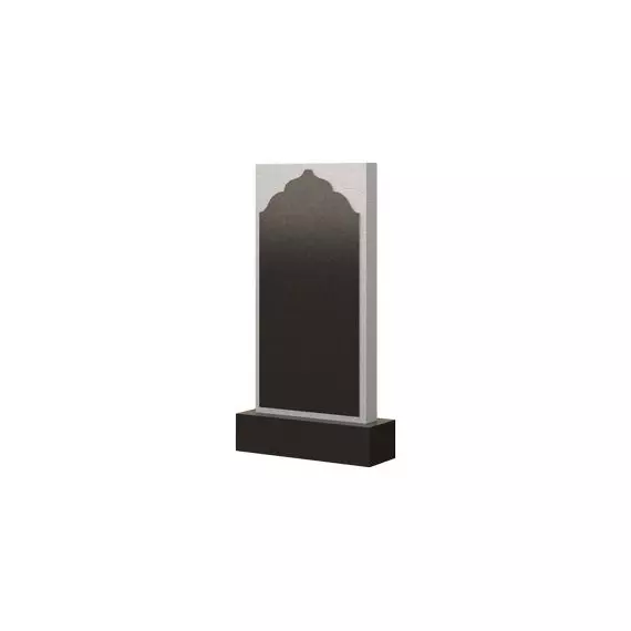Простота и минимализм являются основными определяющими данной модели памятника. Силуэт изделия формируют ровные и четкие линии боковых граней и вершины. Здесь нет каких-либо волнообразных изгибов – все сдержанно и лаконично и, вместе с тем, имеет достойный и солидный вид. Своеобразным оформлением является полированная черная вставка на лицевой стороне стелы, образованная ровными вертикалями и фигурной верхушкой в виде купола храма. Надгробие такой формы подчеркнет отношение покойного к религии, а также всесторонне раскроет особенности его личности и характера.