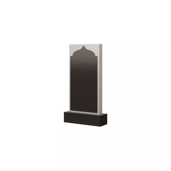 Выразительная и в то же время достаточно сдержанная по своей форме модель памятника, в основе которой лежит прямоугольник. Его четкие и ровные линии придают надгробному сооружению значительность и вековечность. Такая конструкция подойдет для любого композиционного ансамбля места захоронения и органично дополнит его. Могильный участок приобретет красивый и законченный вид. А прорисованная на лицевой стороне мемориальной стелы черная полированная вставка с куполообразным верхом, поможет отразить религиозную принадлежность усопшего родственника к той или иной вере.