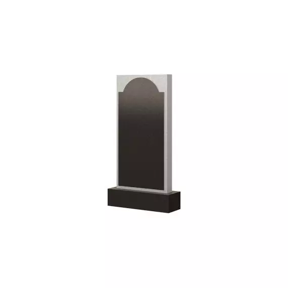 Простая и лаконичная форма памятника, основу которой составляет прямоугольник, станет прекрасным вариантом для обустройства места захоронения почившего родственника. Строгие и ровные линии прочерчивают и боковые грани сооружения, и его вершину. Лицевая сторона изделия имеет своеобразный экран, который контрастным акцентом проходит по всей высоте плиты. Его боковые края идут параллельно вдоль памятника, а верхушка образована полукруглой дугой. Такое оригинальное сочетание форм и линий поможет полно и выразительно подчеркнуть особенности личности покойного.