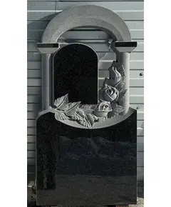 На боковых частях с особой тщательностью выполнена резьба в виде роз и листьев. Эта флористическая орнаментация придает изделию изысканный и торжественный вид, подчеркивая глубину и насыщенность черного цвета габбро-диабаза.