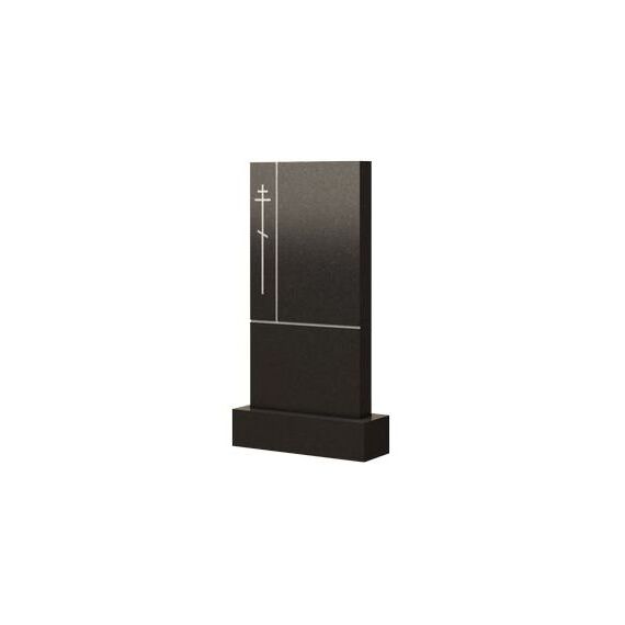 Модель памятника прямоугольной формы с контрастным акцентом на лицевой стороне. Изящный и утонченный православный крест, прорезанный в стеле с левого верхнего края задает религиозную направленность мемориального изделия, которое станет достойным и красивым обозначением могильного участка. Две четких белых перпендикулярных прямых заключают его в некую рамочку и проходят дальше по всей ширине плиты, визуально разделяя ее на две части. В надгробии такой формы отражаются и строгость, и величие. Каждая его грань наполнена эмоциональной выразительностью, в которой заключены и скорбь, и смирение, и безграничная любовь к ушедшему в мир иной близкому и родному человеку.