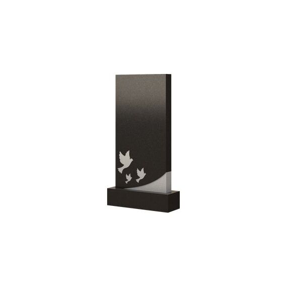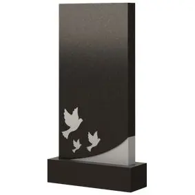 Модель представлена в виде классического памятника прямоугольной формы. Но стоит отметить, что внешний вид этого надгробия преображается благодаря расположенному снизу оригинальному и символичному украшению. Оно представляет из себя образ трех голубей различного размера, которые распахнули свои крылья и полетели к небесам. Оформление несет в себе довольно глубокое значение, так как эти птицы являются олицетворением душевной чистоты, невинности и других мягких черт характера, коими обладал усопший при жизни. Помимо этого, с помощью данного надгробия вы сможете выразить боль и скорбь, испытываемые в связи с утратой любимого человека.