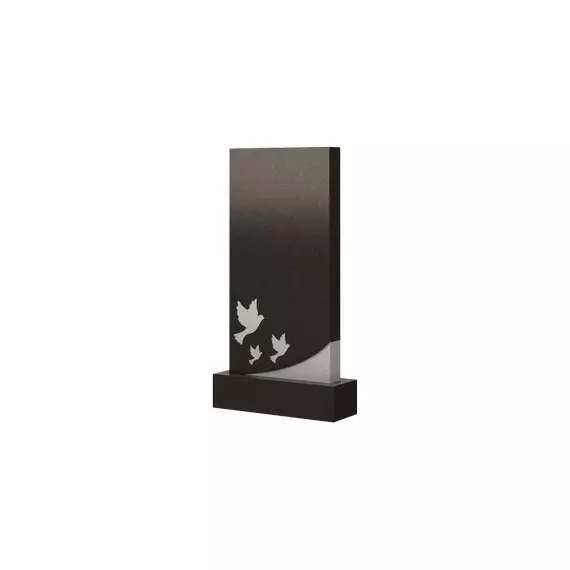 Модель представлена в виде классического памятника прямоугольной формы. Но стоит отметить, что внешний вид этого надгробия преображается благодаря расположенному снизу оригинальному и символичному украшению. Оно представляет из себя образ трех голубей различного размера, которые распахнули свои крылья и полетели к небесам. Оформление несет в себе довольно глубокое значение, так как эти птицы являются олицетворением душевной чистоты, невинности и других мягких черт характера, коими обладал усопший при жизни. Помимо этого, с помощью данного надгробия вы сможете выразить боль и скорбь, испытываемые в связи с утратой любимого человека.