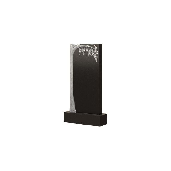 Модель памятника типовой прямоугольной формы. Его правая сторона имеет гладкий полированный край, а левая выполнена коркой, вдоль которой по всей высоте надгробия тянется хрупкий и тоненький ствол молодого дубка. Вершину плиты обрамляет изящно изогнутая и печально склоненная ветка дерева. Ее плакучее изображение с понуро свисающими листьями наполнены глубокой эмоциональной выразительностью. Целая гамма чувств отражается во всем силуэте дерева – это и боль, и тоска, и нежность, и любовь. Надгробие такой формы станет достойным элементом обустройства могильного участка и сохранит светлую память о почившем на многие годы.