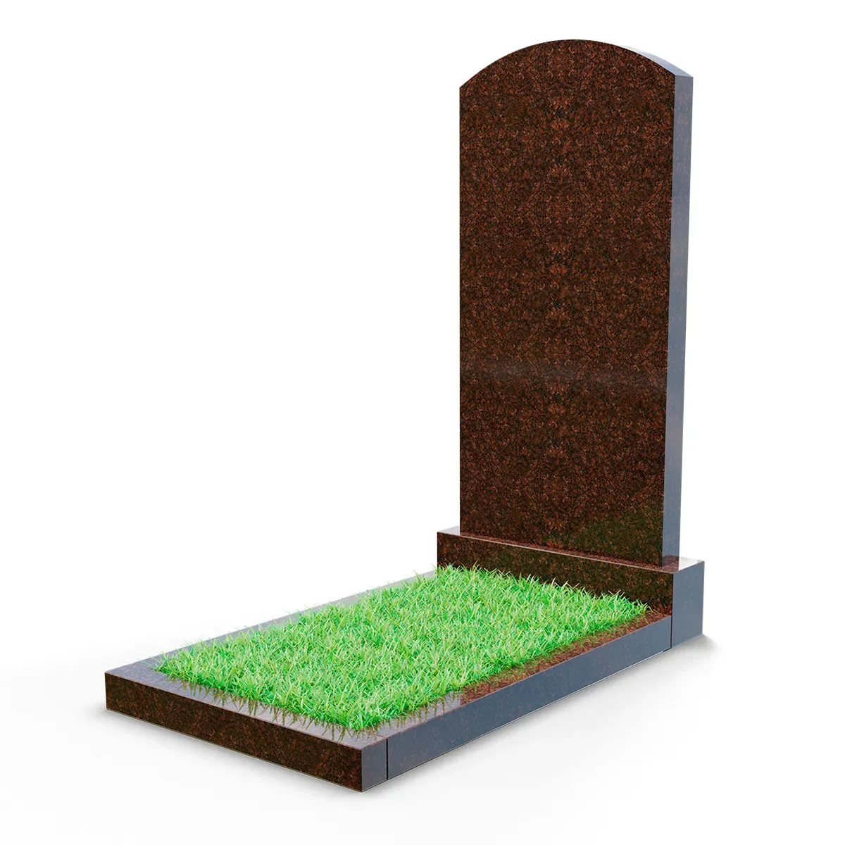 Фигурный памятник КукП7 100*50*5 Елизовский с тумбой 55 см - это минималистичный и элегантный надгробный памятник, выполненный из высококачественного гранита. Фигурная стела с изящной аркой в верхней части и устойчивым прямоугольным основанием, к которому прилегает цветник подчеркивают четкость линий и спокойную атмосферу изделия. Строгий дизайн с четко видимой текстурой камня создает сдержанное настроение, делая памятник достойным выражением уважения и памяти.