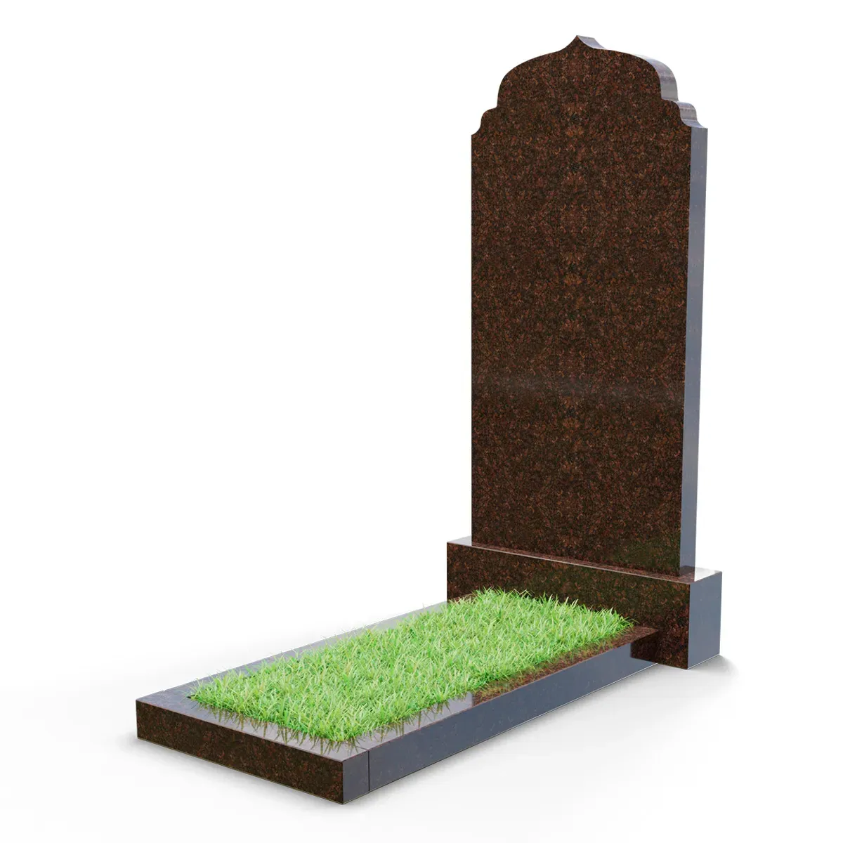 Фигурный памятник КукП74БП 100*50*8 Елизовский с тумбой 60 см - это элегантное мемориальное решение, выполненное из высококачественного камня. Комплект включает вертикальную стелу, тумбу 60 см и цветник, который гармонично дополняет композицию, создавая завершённое оформление мемориальной зоны. Верх памятника оформлен в виде купола. Этот памятник станет хорошим выбором для тех, кто ценит традиционные мотивы в сочетании с современными решениями в дизайне мест памяти.