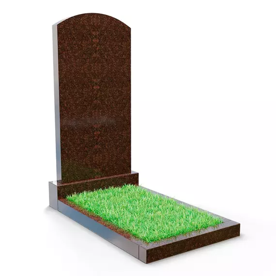 Фигурный памятник КукП7 100*50*5 Елизовский с тумбой 55 см - это минималистичный и элегантный надгробный памятник, выполненный из высококачественного гранита. Фигурная стела с изящной аркой в верхней части и устойчивым прямоугольным основанием, к которому прилегает цветник подчеркивают четкость линий и спокойную атмосферу изделия. Строгий дизайн с четко видимой текстурой камня создает сдержанное настроение, делая памятник достойным выражением уважения и памяти.