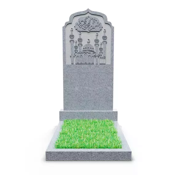 Фигурный памятник КукП74 120*60*8 Исетский с тумбой 70 см - это элегантное мемориальное решение, выполненное из высококачественного камня. Комплект включает вертикальную стелу, украшенную декоративной гравировкой с изображением мечети Кул-Шариф, символизирующей духовность, тумбу 70 см и цветник, который гармонично дополняет композицию, создавая завершённое оформление мемориальной зоны. Верх памятника оформлен в виде купола. Этот памятник станет идеальным выбором для тех, кто ценит традиционные мотивы в сочетании с современными решениями в дизайне мест памяти.