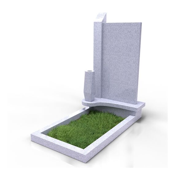 Комбинированный комплект «Исетский КукД57» – элегантный памятник из светлого серого гранита с лаконичным и прочным дизайном. Прямые линии и вертикальные элементы стелы создают гармоничный силуэт, подчеркивая строгую красоту камня. Комплект дополнен цветником под зелень или гравий и декоративной вазой. Толщина 5 см позволяет памятнику быть устойчивым вариантом для благоустройства места памяти.