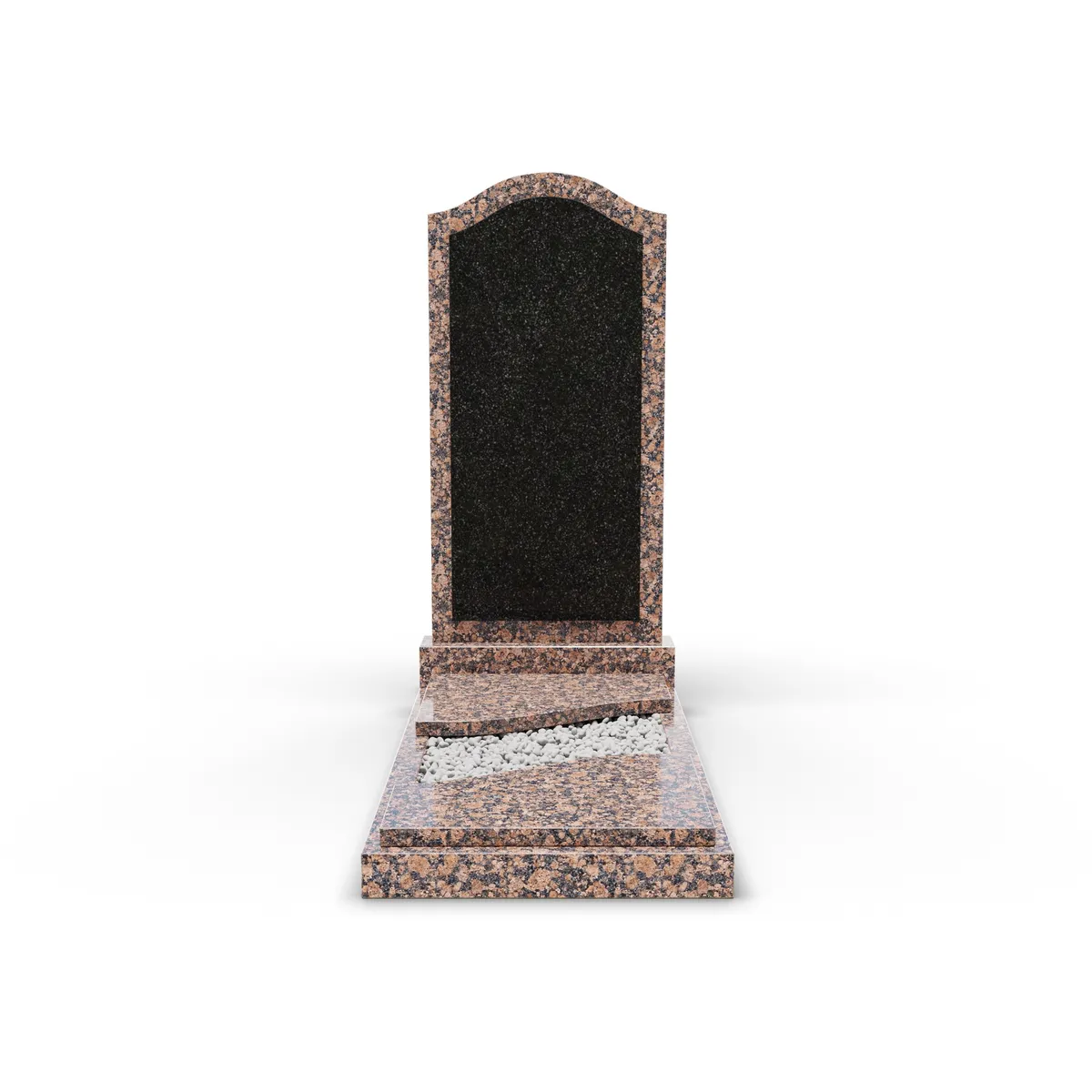 Комбинированный памятник «КукП11В Ю-Султаевский» - сочетает строгий минимализм с элегантностью классического дизайна. Изготовленный из высококачественного гранита, он украшен черной вставной плитой из Габбро. Верх стелы имеет изящную форму «плечи». Ширина тумбы - 55 см. Памятник выполнен в минималистичном стиле, где каждая деталь продумана до мелочей: четкие линии плит и прямоугольный постамент, накрытый двумя короткими плитами, создают ощущение спокойствия и сдержанности. Материал подчеркивает форму памятника, делая его достойным выбором для увековечения памяти.
