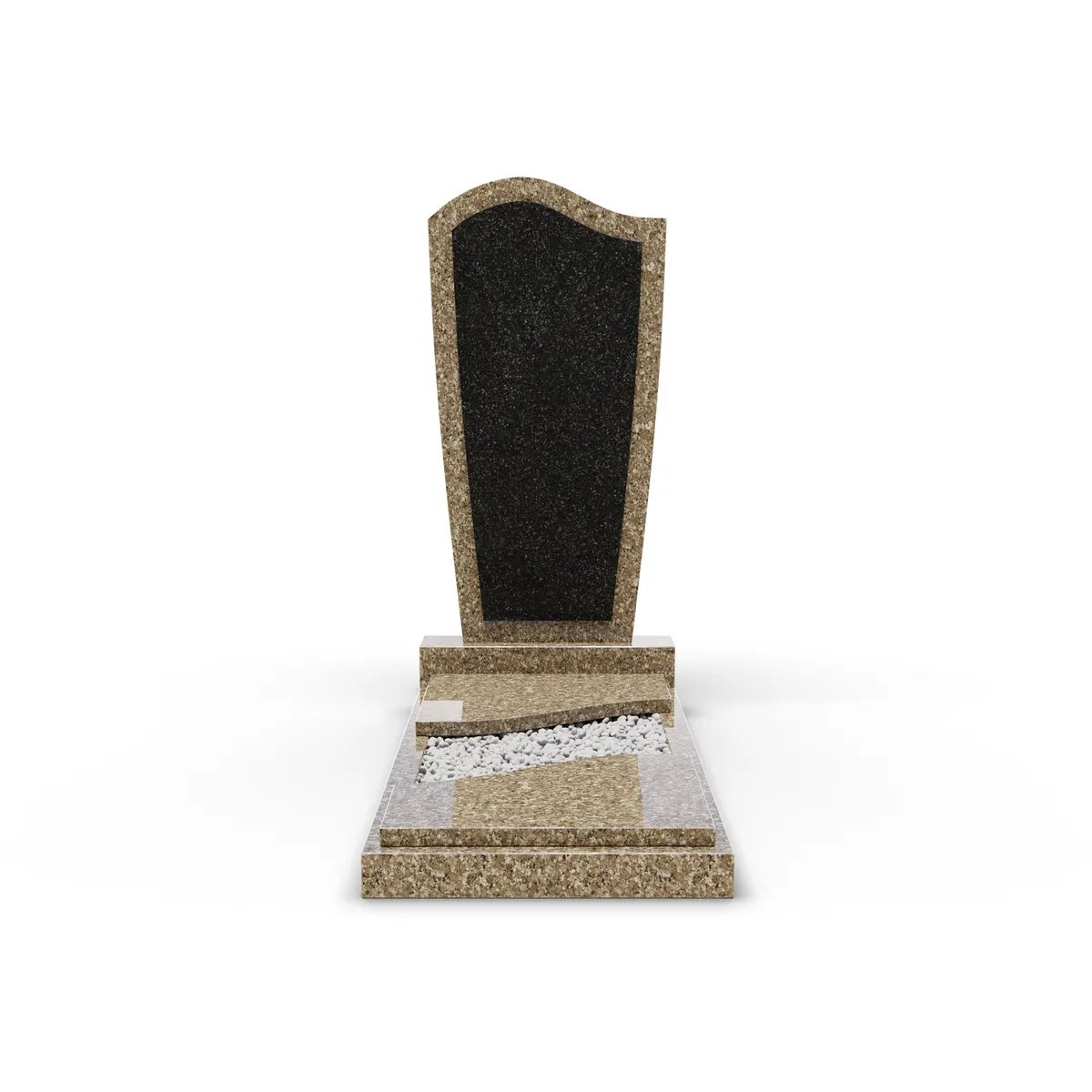 Комбинированный памятник «КукП12В Куртинский» - сочетает классическую строгость с элегантностью минимализма. Надгробная плита из высококачественного гранита, верх выполнен в форме волны а в самой стеле размещена вставная плита из Габбро. Без лишних деталей. Ширина тумбы - 60 см. Низ памятника накрыт двумя короткими плитами. Точная обработка и высококачественный гранит гарантируют долговечность памятника, создавая достойное и уважительное пространство для увековечения памяти.