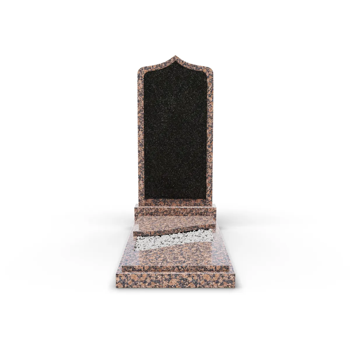 Комбинированный памятник «КукП38В Ю-Султаевский» – это высококачественный надгробный памятник с тумбой 60 см, выполненный из высококачественного гранита с эффектной черной вставкой. Этот памятник сочетает классический стиль с современным минимализмом, благодаря чему становится достойным местом памяти. Надгробная плита из гранита демонстрирует естественную текстуру и прочность материала, а черная вставка подчеркивает четкие формы и придает изделию современный акцент. Изящная заостренная вершина в верхней части памятника и накрытый двумя короткими плитами цветник создают атмосферу спокойствия и гармонии, делая композицию утонченной и лаконичной. Этот памятник станет надежным выбором для увековечения памяти, символизируя уважение и тепло к ушедшим близким.
