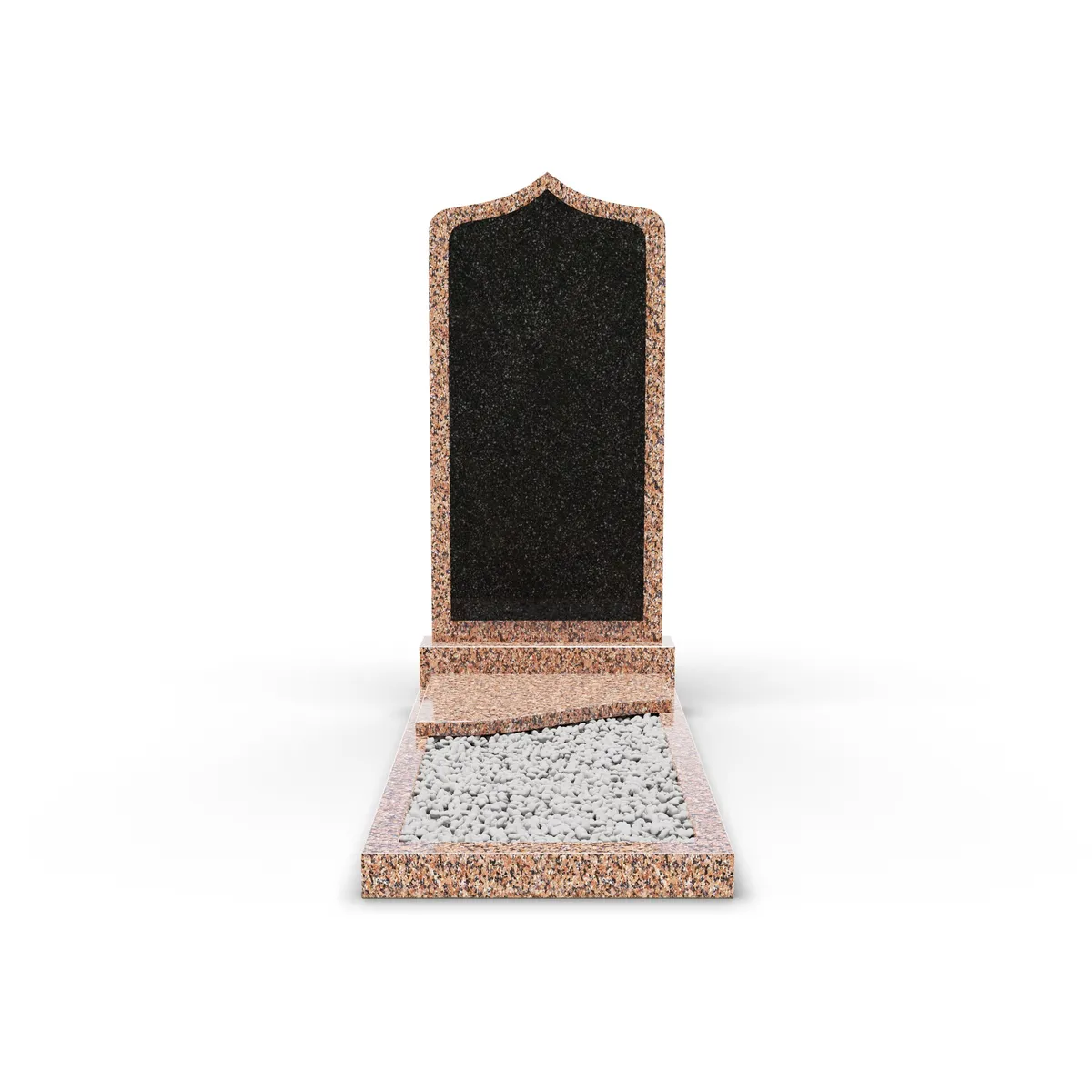 Комбинированный памятник «КукП38В Жельтау5» – это высококачественный надгробный памятник с тумбой 55 см, выполненный из высококачественного гранита с эффектной черной вставкой. Этот памятник сочетает классический стиль с современным минимализмом, благодаря чему становится достойным местом памяти. Надгробная плита из гранита демонстрирует естественную текстуру и прочность материала, а черная вставка подчеркивает четкие формы и придает изделию современный акцент. Изящная заостренная вершина в верхней части памятника и накрытый одной короткой плитой цветник создают атмосферу спокойствия и гармонии, делая композицию утонченной и лаконичной. Этот памятник станет надежным выбором для увековечения памяти, символизируя уважение и тепло к ушедшим близким.