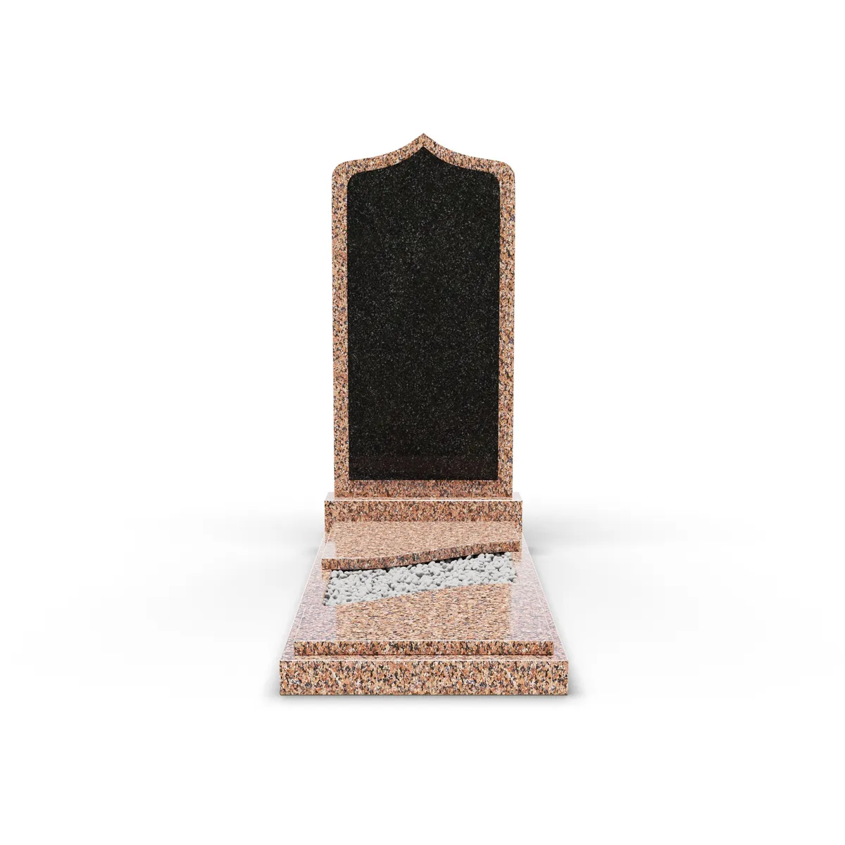 Комбинированный памятник «КукП38В Жельтау5» – это высококачественный надгробный памятник с тумбой 60 см, выполненный из высококачественного гранита с эффектной черной вставкой. Этот памятник сочетает классический стиль с современным минимализмом, благодаря чему становится достойным местом памяти. Надгробная плита из гранита демонстрирует естественную текстуру и прочность материала, а черная вставка подчеркивает четкие формы и придает изделию современный акцент. Изящная заостренная вершина в верхней части памятника и накрытый двумя короткими плитами цветник создают атмосферу спокойствия и гармонии, делая композицию утонченной и лаконичной. Этот памятник станет надежным выбором для увековечения памяти, символизируя уважение и тепло к ушедшим близким.