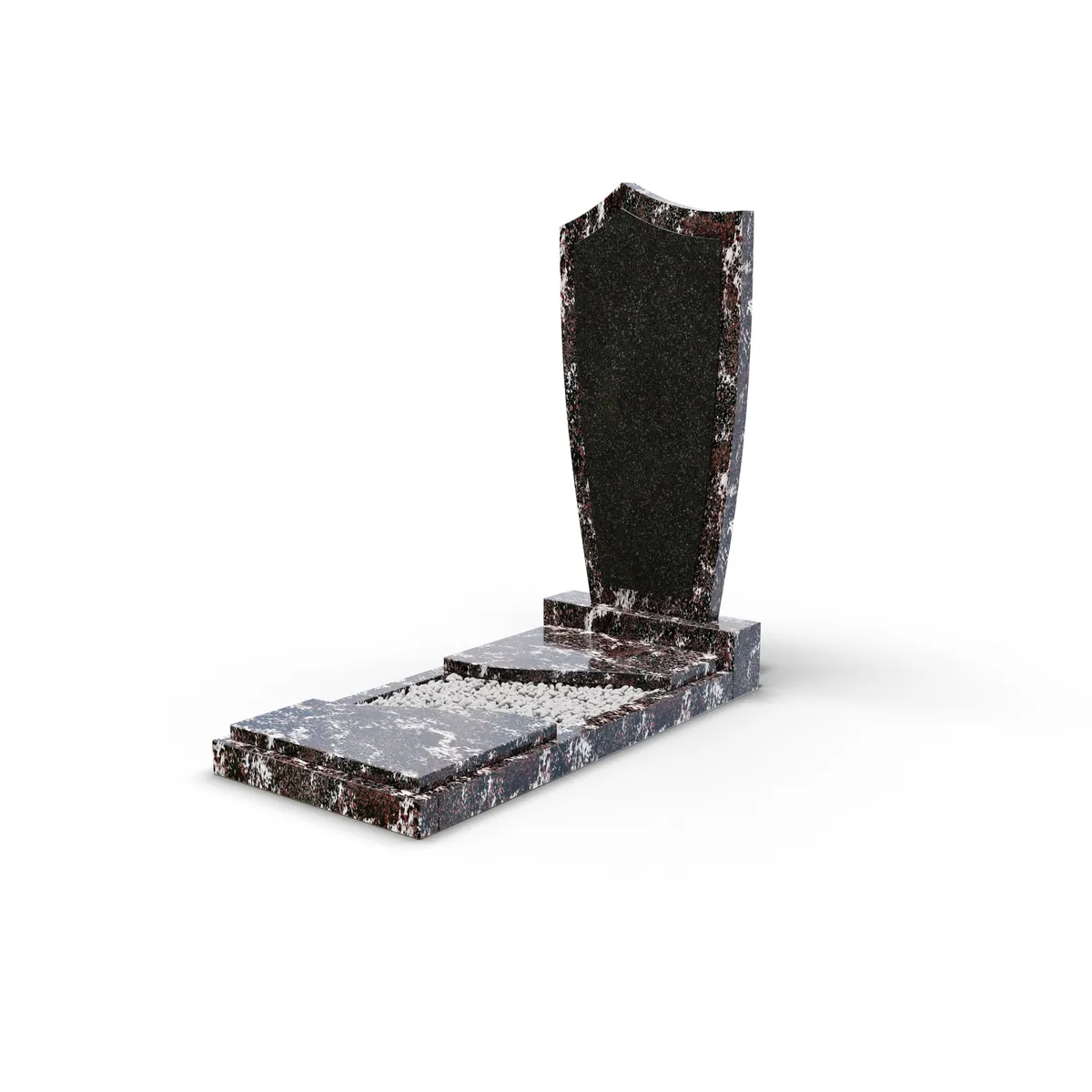 Комбинированный памятник «КукП4В Гранатовый амфиболит» – элегантное надгробие из камня с выразительными светлыми прожилками с контрастной черной вставкой из Габбро. Форма памятника напоминает щит с заостренной верхней частью. Основание выполнено из редкого гранита, а зона захоронения накрыта двумя короткими плитами. Прочная тумба шириной 55 см придает конструкции устойчивость к погодным условиям и сохранение эстетики на долгие годы. Идеальное сочетание классики и современного дизайна.
