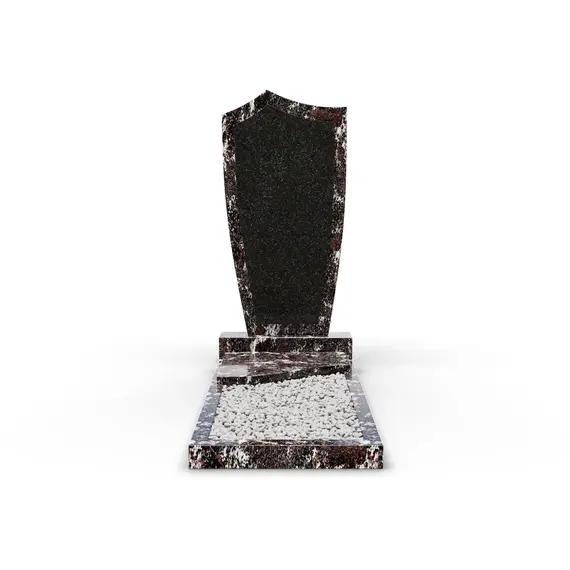 Комбинированный памятник «КукП4В Гранатовый амфиболит» – элегантное надгробие из камня с выразительными светлыми прожилками с контрастной черной вставкой из Габбро. Форма памятника напоминает щит с заостренной верхней частью. Основание выполнено из редкого гранита, а зона захоронения накрыта одной короткой плитой. Прочная тумба шириной 55 см придает конструкции устойчивость к погодным условиям и сохранение эстетики на долгие годы. Идеальное сочетание классики и современного дизайна.