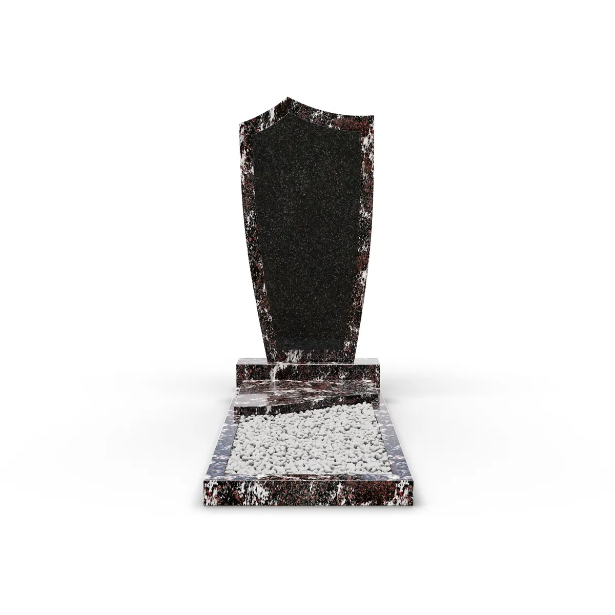 Комбинированный памятник «КукП4В Гранатовый амфиболит» – элегантное надгробие из камня с выразительными светлыми прожилками с контрастной черной вставкой из Габбро. Форма памятника напоминает щит с заостренной верхней частью. Основание выполнено из редкого гранита, а зона захоронения накрыта одной короткой плитой. Прочная тумба шириной 60 см придает конструкции устойчивость к погодным условиям и сохранение эстетики на долгие годы. Идеальное сочетание классики и современного дизайна.