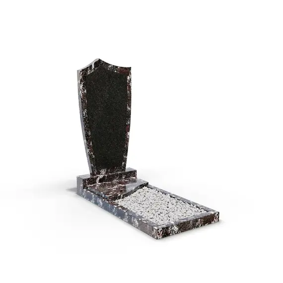 Комбинированный памятник «КукП4В Гранатовый амфиболит» – элегантное надгробие из камня с выразительными светлыми прожилками с контрастной черной вставкой из Габбро. Форма памятника напоминает щит с заостренной верхней частью. Основание выполнено из редкого гранита, а зона захоронения накрыта одной короткой плитой. Прочная тумба шириной 60 см придает конструкции устойчивость к погодным условиям и сохранение эстетики на долгие годы. Идеальное сочетание классики и современного дизайна.