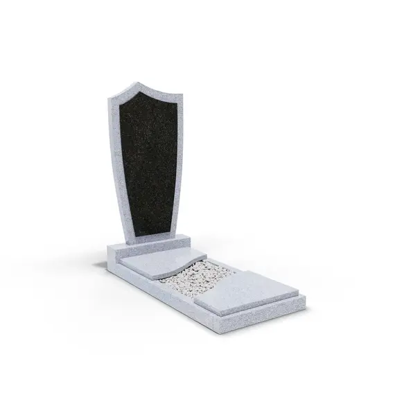 Комбинированный памятник «КукП4В Исетский» – элегантное надгробие из светлого серого камня с контрастной черной вставкой из Габбро. Форма памятника напоминает щит с заостренной верхней частью. Основание выполнено из светлого гранита, а зона захоронения накрыта двумя короткими плитами. Прочная тумба шириной 55 см придает конструкции устойчивость к погодным условиям и сохранение эстетики на долгие годы. Идеальное сочетание классики и современного дизайна.