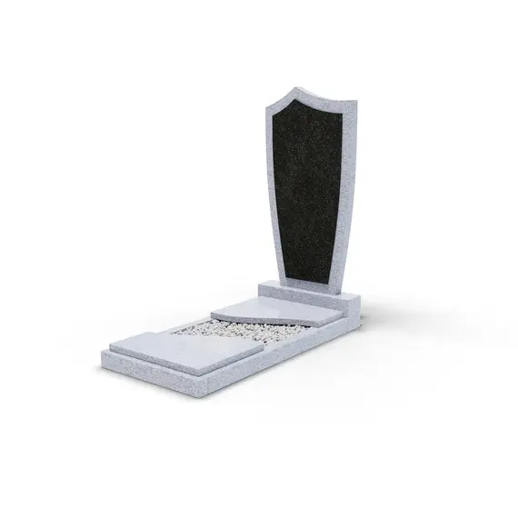 Комбинированный памятник «КукП4В Исетский» – элегантное надгробие из светлого серого камня с контрастной черной вставкой из Габбро. Форма памятника напоминает щит с заостренной верхней частью. Основание выполнено из светлого гранита, а зона захоронения накрыта двумя короткими плитами. Прочная тумба шириной 55 см придает конструкции устойчивость к погодным условиям и сохранение эстетики на долгие годы. Идеальное сочетание классики и современного дизайна.