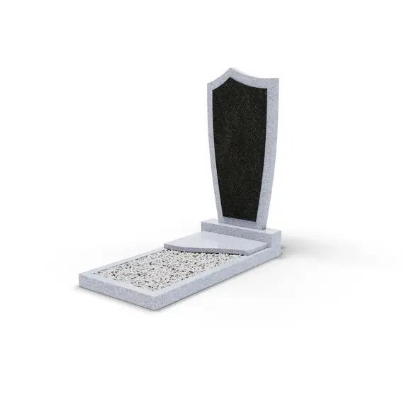 Комбинированный памятник «КукП4В Исетский» – элегантное надгробие из светлого серого камня с контрастной черной вставкой из Габбро. Форма памятника напоминает щит с заостренной верхней частью. Основание выполнено из светлого гранита, а зона захоронения накрыта одной короткой плитой. Прочная тумба шириной 60 см придает конструкции устойчивость к погодным условиям и сохранение эстетики на долгие годы. Идеальное сочетание классики и современного дизайна.